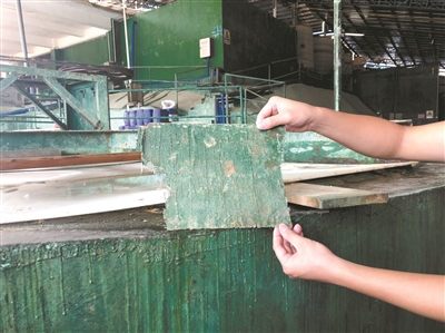 昨日上午,記者在南溪環(huán)??萍脊究吹?,該公司仍然處于停產(chǎn)整改中。該公司有關(guān)負責人從危廢儲存倉庫里拿出當天“肇事”的防腐隔離層,每片大約只有A4紙大小,是網(wǎng)狀的綠色薄片,但由于長(cháng)期與含銅廢液接觸,含銅量很高。此外,由于廠(chǎng)區依山而建,位于高處,一旦下雨就有山泉水汩汩流下,容易和廠(chǎng)區內被沖刷而外溢的廢液混合,產(chǎn)生安全隱患。為此,公司新建了山水收集溝和廠(chǎng)區污水收集池,將兩種水完全隔離開(kāi)來(lái)。